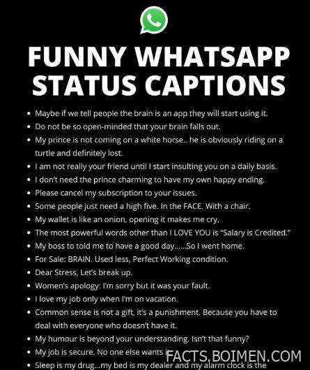 Funny WhatsApp status captions are the easiest way to grab attention, make people laugh, and show off your sense of humor. Whether you’re poking fun at relationships, work, or just life in general, these lines will make sure your contacts stop scrolling and start smiling.