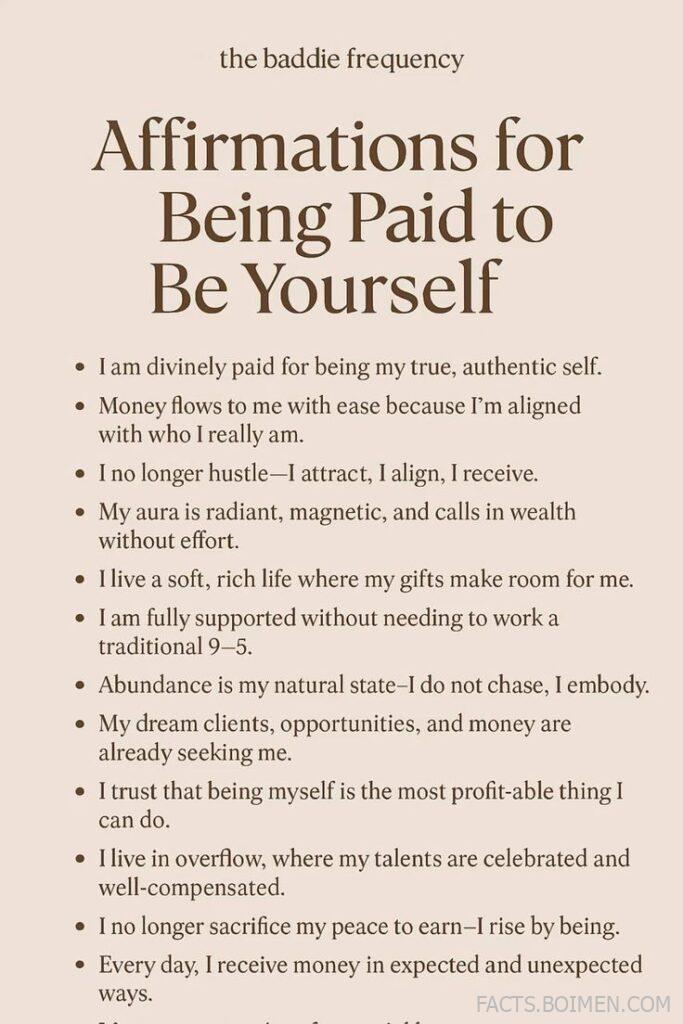 The path to abundance begins within. When you live in alignment with your true nature, you naturally attract wealth, peace, and purpose. Being paid to be yourself is not just a dream — it’s a mindset, a vibration, and a way of life. Every time you choose authenticity over fear, you step closer to your highest, most abundant self.