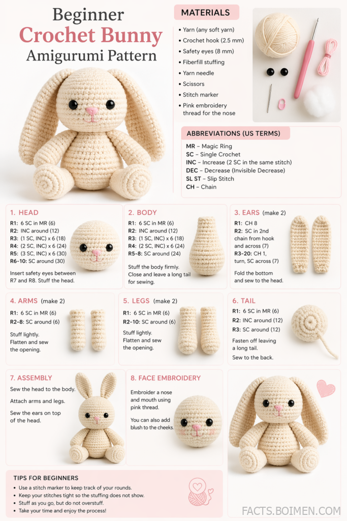 A beginner crochet bunny amigurumi pattern is one of the best first plush toy projects for new crocheters. It is simple, cute, practical, and highly giftable.