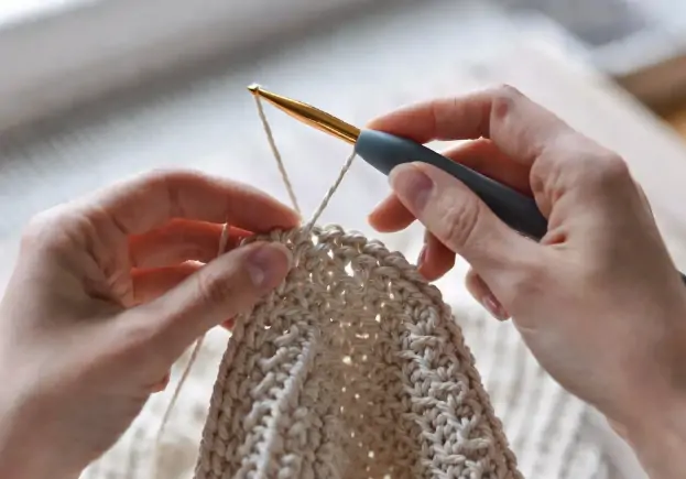 - Crochet hook (usually 4mm–6mm depending on yarn)