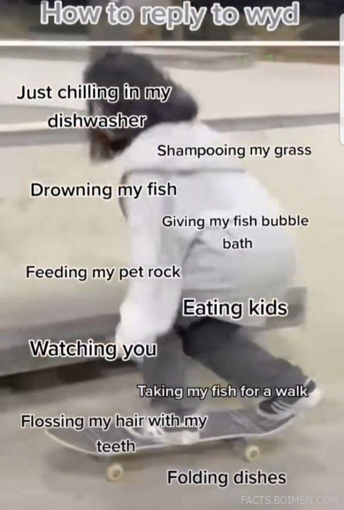 The “How to reply to WYD” meme perfectly captures that energy. It pokes fun at small talk by giving answers that are so exaggerated and surreal that they make the question itself seem ridiculous.