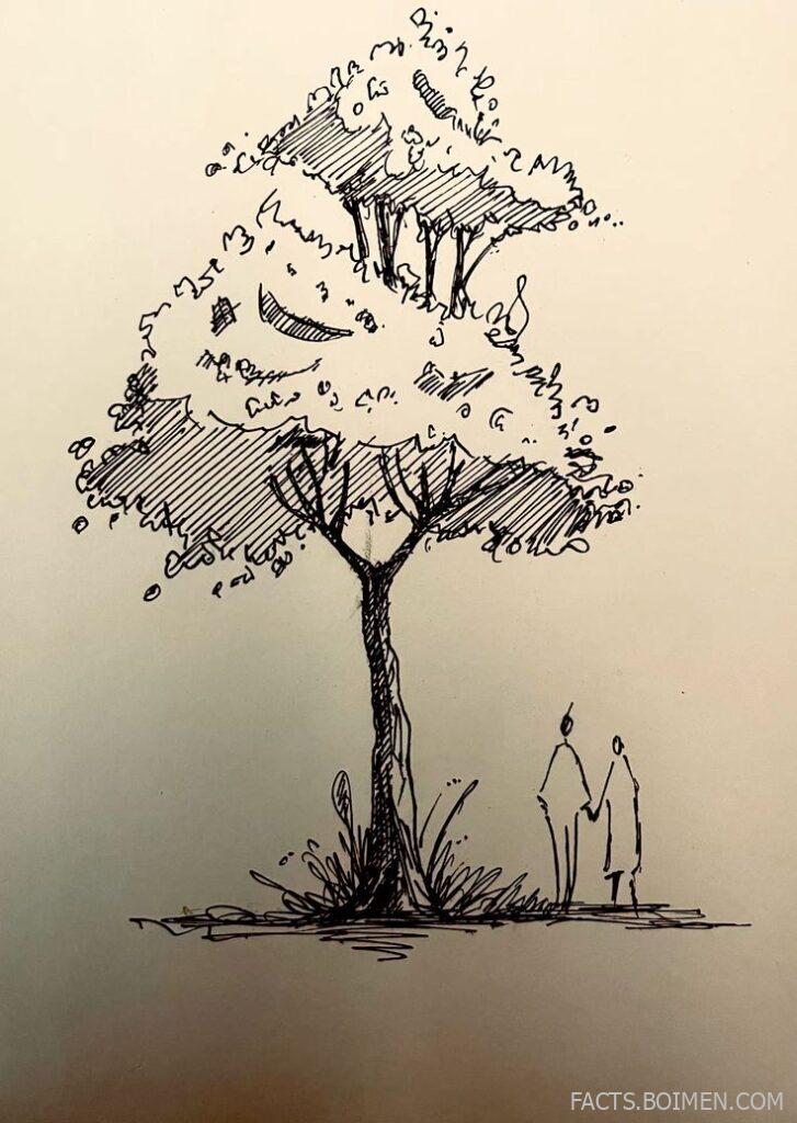 There’s an emotional purity in simplicity. The two figures beneath the tree in this sketch, for example, convey connection and peace. The lines may be rough and minimal, but they carry weight. The tree’s upward reach symbolizes growth, stability, and life, while the figures represent companionship and shared existence.